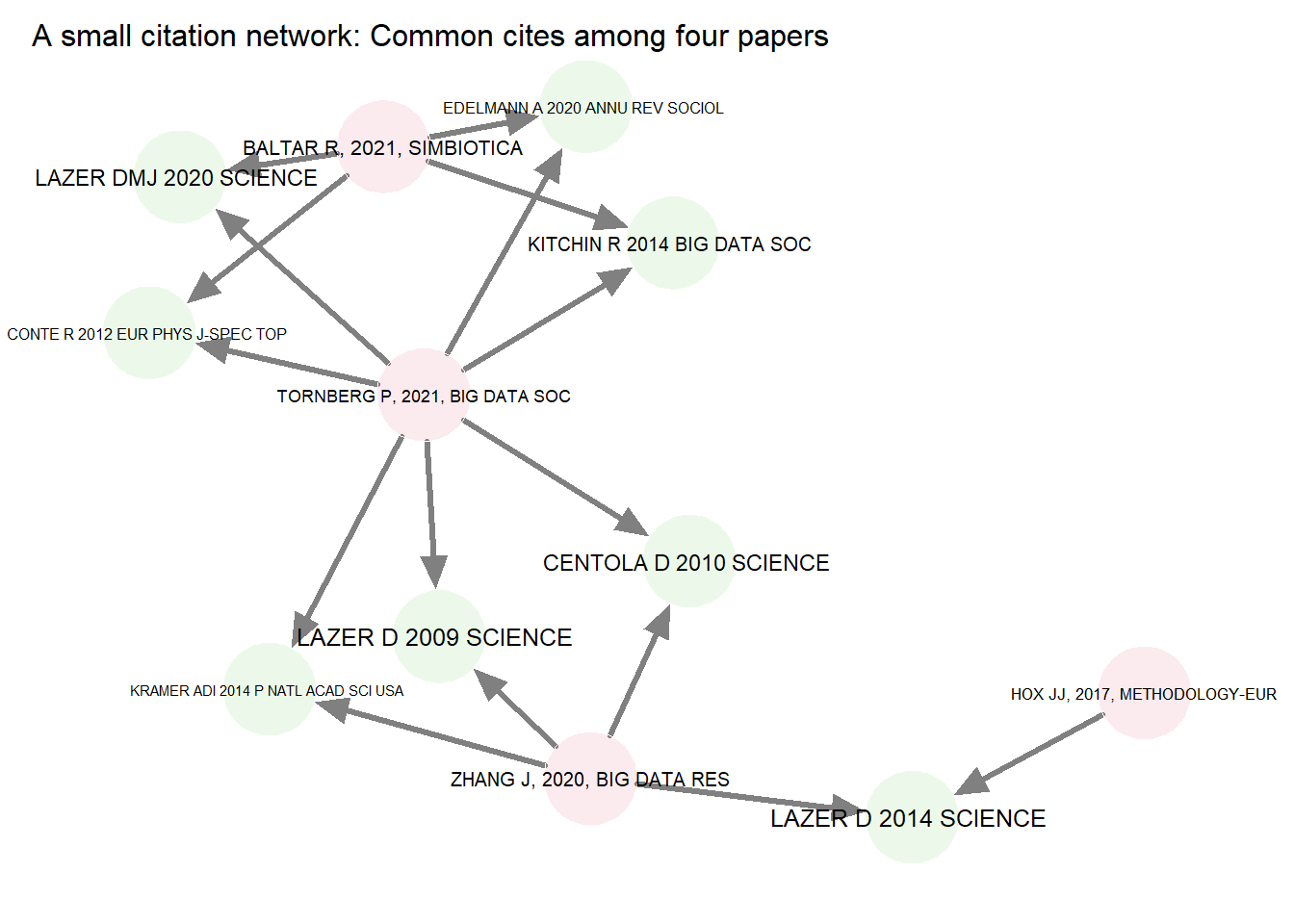 title = "A small citation network: Common cites among four papers")