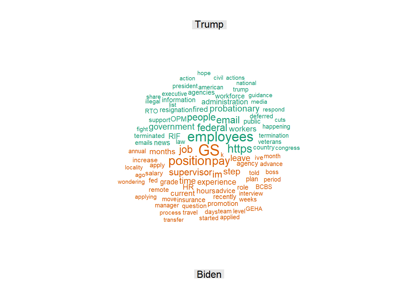 Here, the language of the two epochs comes into clearer focus, with phrases such as deferred resignation characterizing the Trump epoch and the relatively benign pay period characterizing the Biden period.